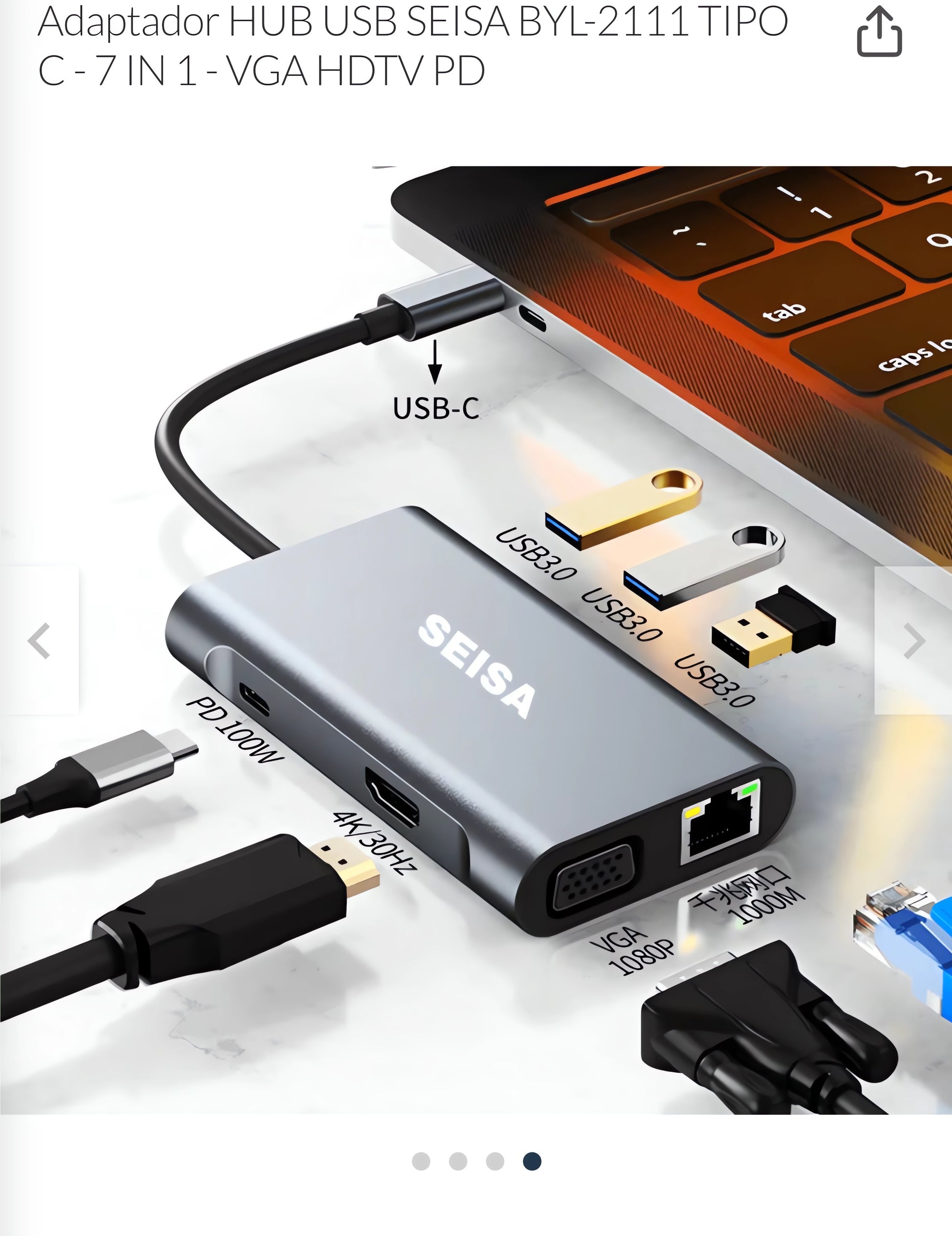 🚀ADAPTADOR HUB USB SIESA BYL-2111 TIPO C 7 EN 1 – CONEXIÓN VERSÁTIL Y COMPACTA✨
