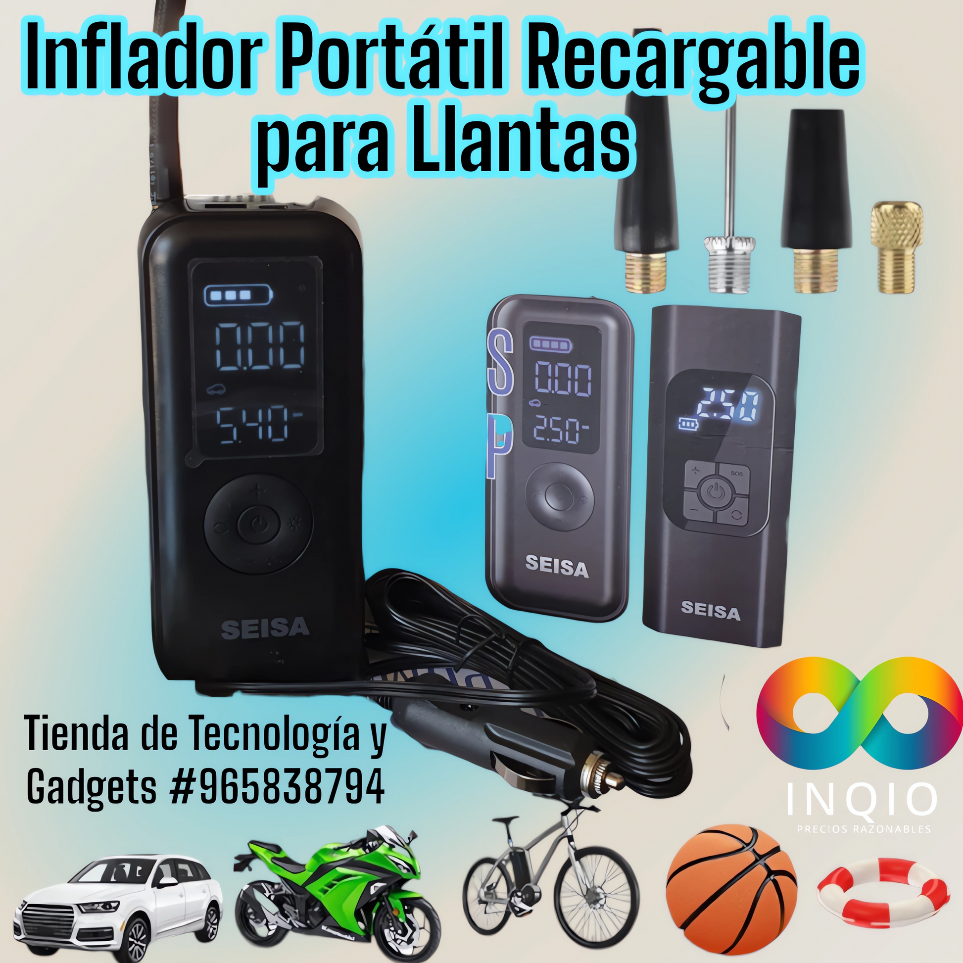 El Inflador de Llantas Seisa es la solución perfecta para mantener la presión correcta en tus llantas de manera rápida y precisa 🚀