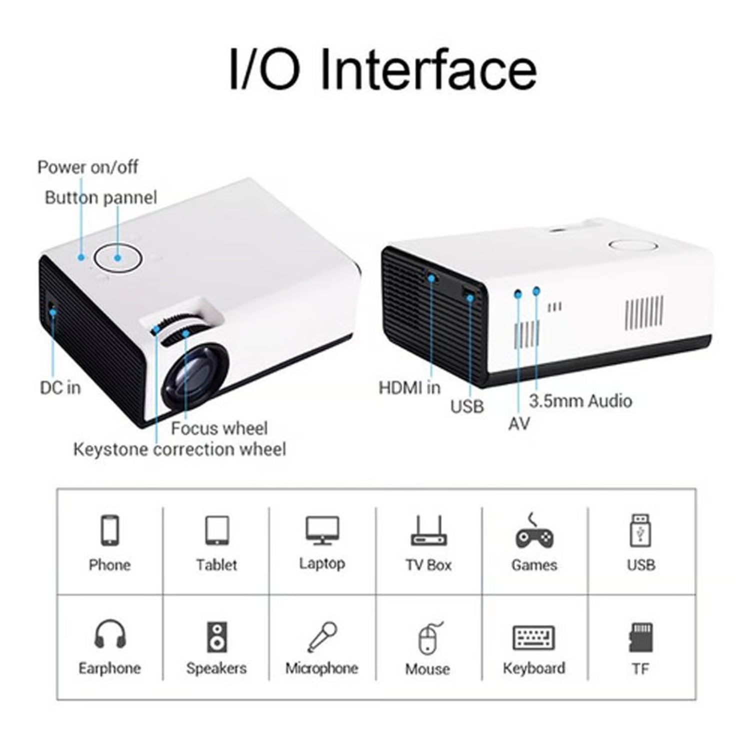 Proyección nítida y vibrante con resolución 1080P para disfrutar de películas y videos en alta definición. 🎥💎