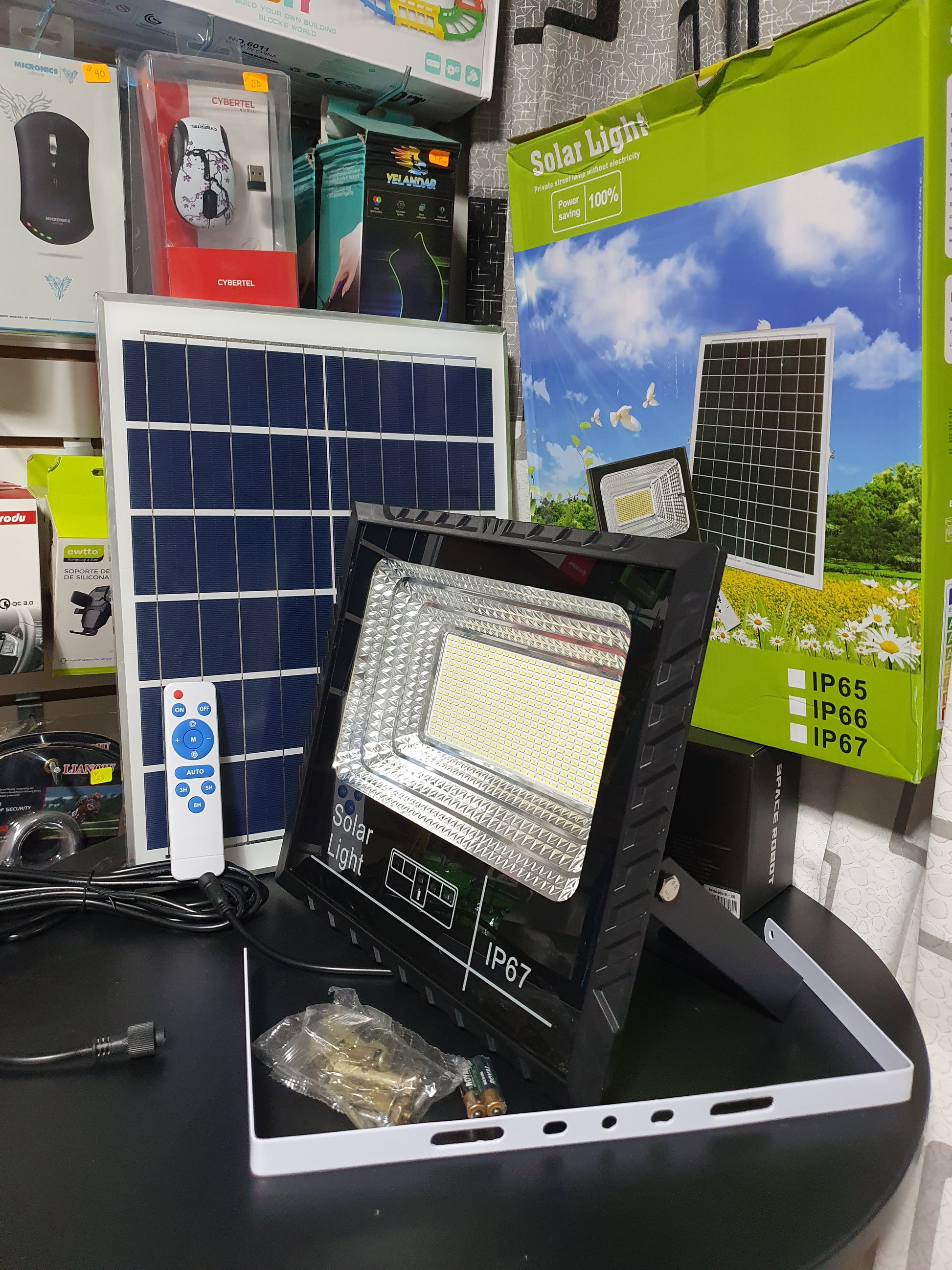 Este reflector LED solar es la solución perfecta para iluminar espacios grandes sin gastar en electricidad. Con potencia de 300W, batería de larga duración y control remoto, tendrás seguridad, comodidad y eficiencia en un solo producto. 🌟