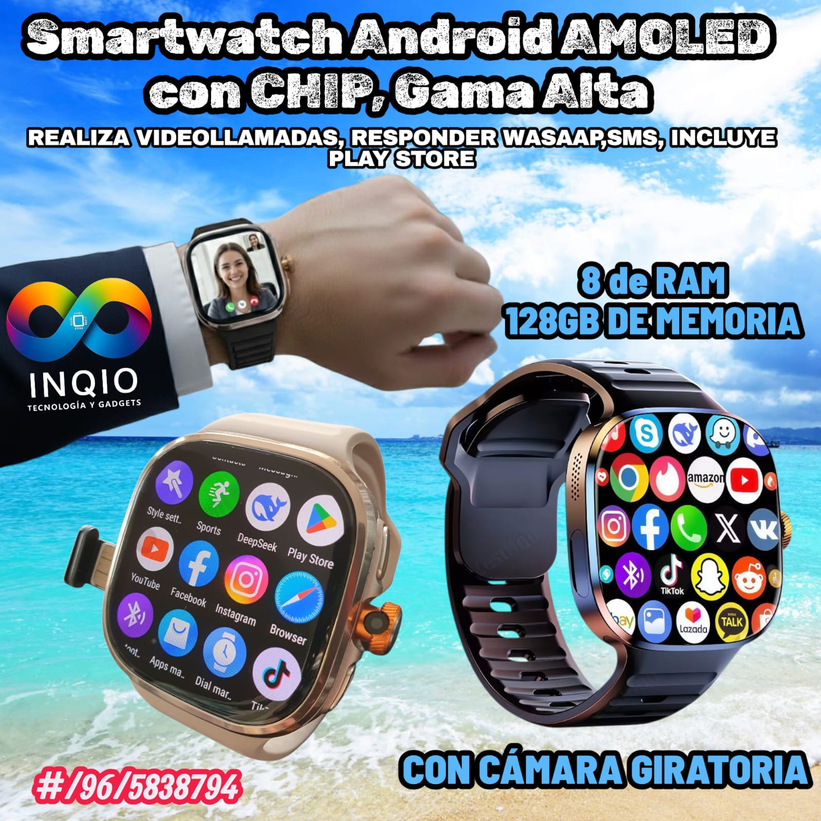 Smartwatch Android AMOLED 8GB RAM 128GB | Chip SIM WiFi Bluetooth + Cámara Giratoria