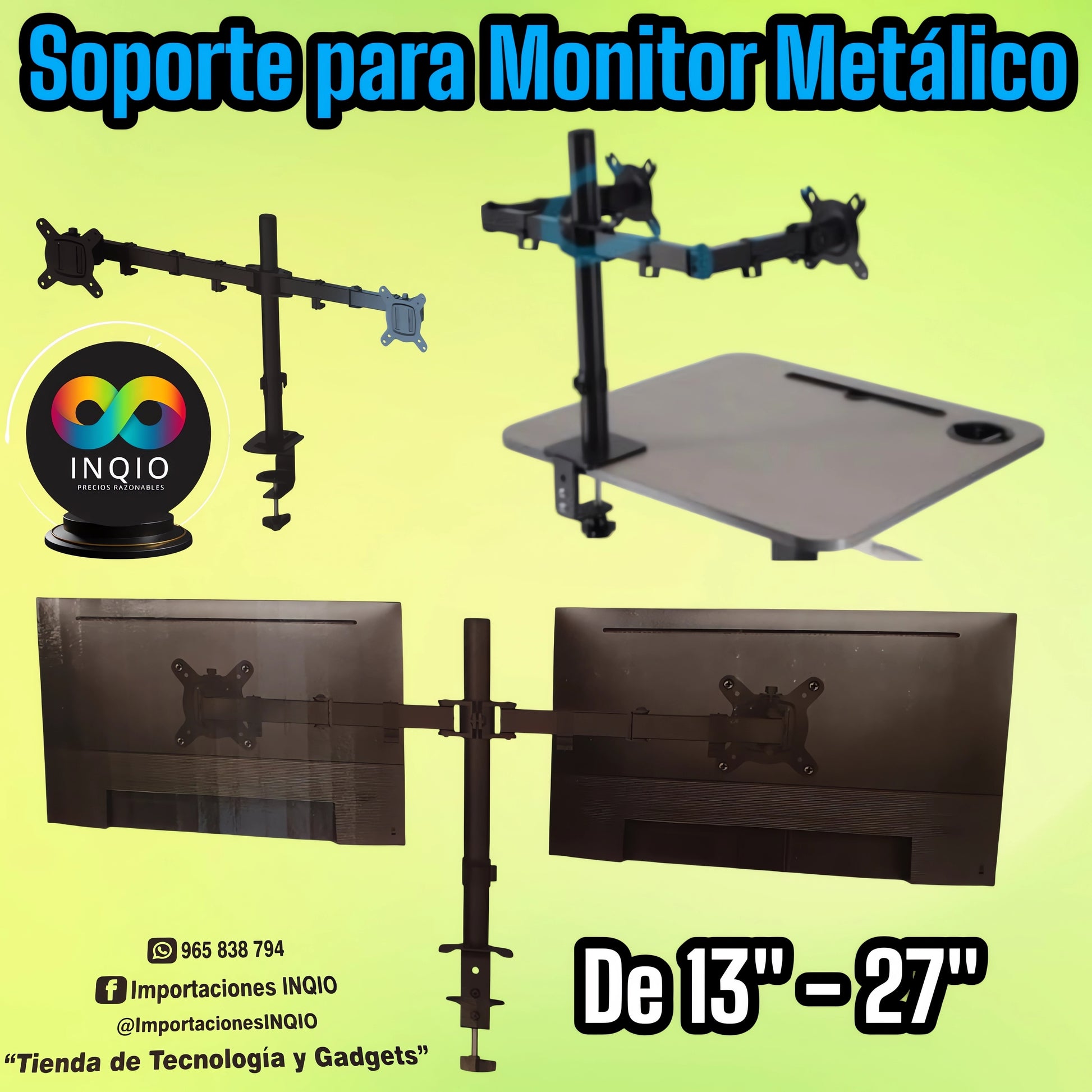 🔹 Optimiza tu escritorio con este soporte ajustable diseñado para monitores de 13” a 27”. Mejora tu postura y organización. 🎯